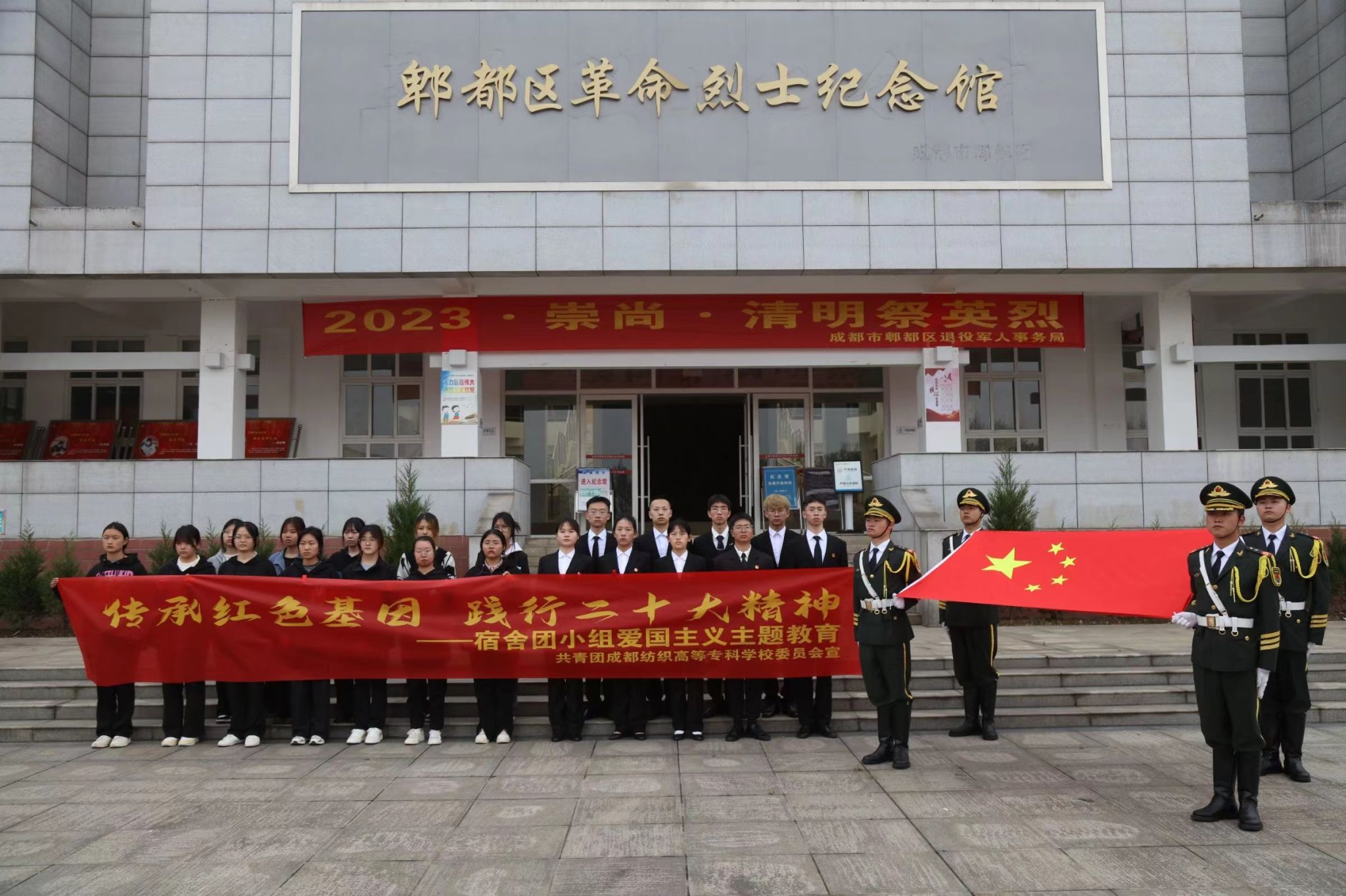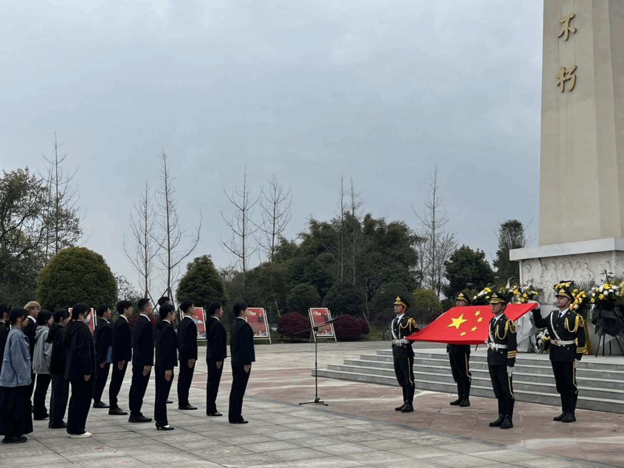 团委组织校国旗护卫队和宿舍团小组成员前往郫都区烈士陵园开展“传承红色基因,践行二十大精神”爱国主义主题教育。