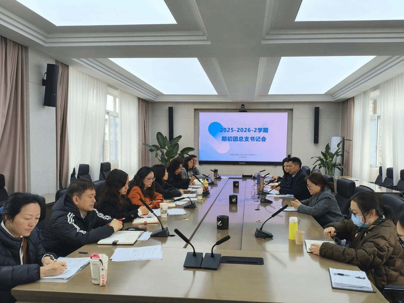 本次会议聚焦第二课堂积分管理、“挑战杯”赛事推进与团校建设等核心工作,旨在总结上一阶段工作成果,统筹部署新学期共青团重点任务。会上,徐瑾围绕第二课堂积分预警及积分修订、“挑战杯”赛事部署、团校建设与培训规划三项核心议程进行详细讲解,明确了各项工作的实施细则与时间节点。各学院团总支书记结合本院工作实际,就工作推进中的重点、难点问题展开深入交流探讨,分享工作思路与实践经验,凝聚起协同推进工作的共识。