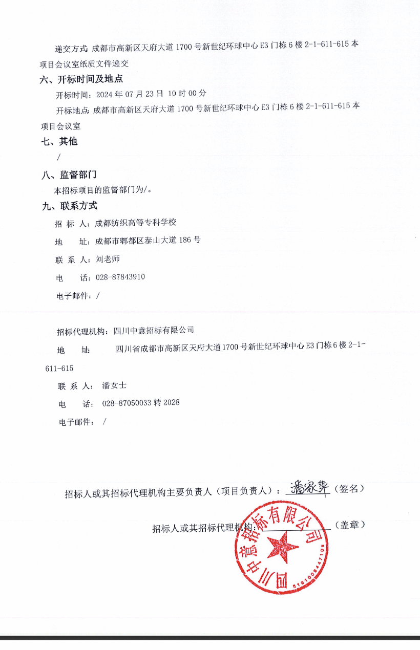 成都纺织高等专科学校智能制造与装备学院多媒体授课系统采购项目公开招标公告