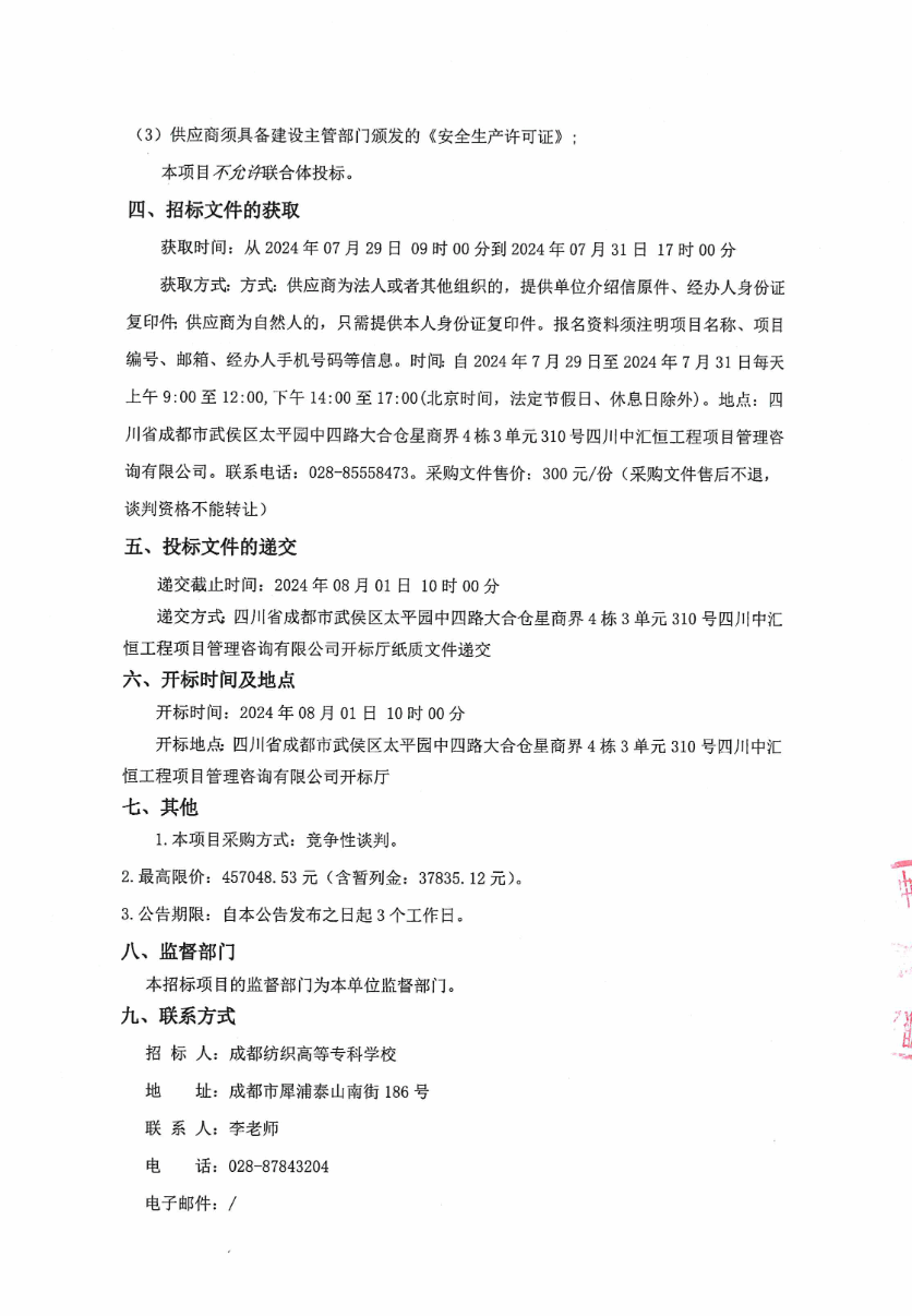 成都纺织高等专科学校2024年邛崃产教园区后勤附属用房电力增容改造工程竞争性谈判采购公告