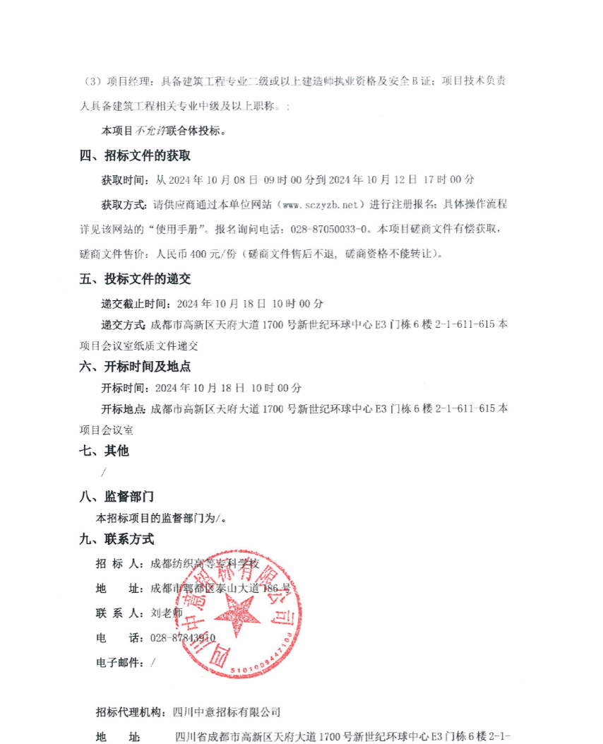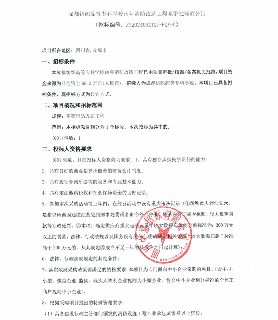 成都纺织高等专科学校南苑消防改造工程竞争性磋商公告