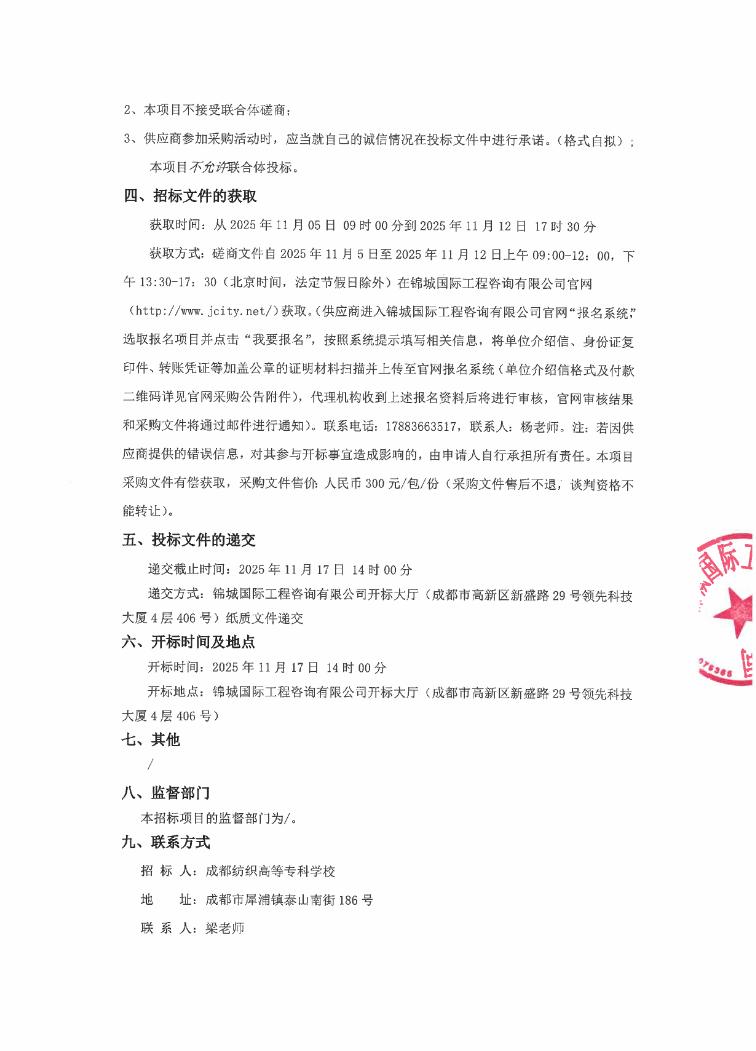 成都纺织高等专科学校校园网连通运营商光纤链路服务项目采购公告