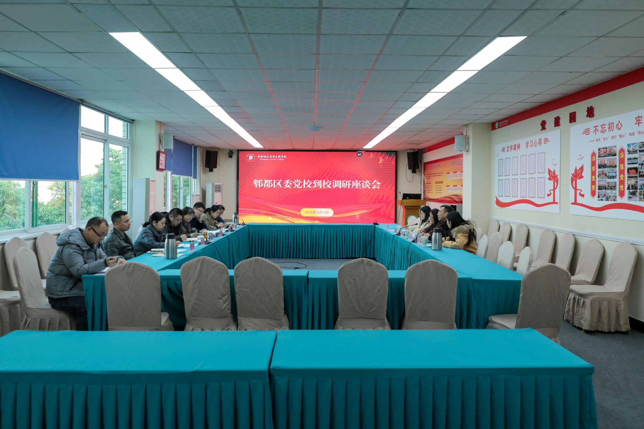 12月10日,郫都区委党校副校长敬连会、王零平等一行4人到我校调研交流,双方在明德楼第三会议室进行座谈交流,党委副书记周红出席。学校组织部、继续教育中心、织绣技艺非遗数字化保护与传承重点实验室、马克思主义学院、人事处相关负责人和科技处相关人员参会。