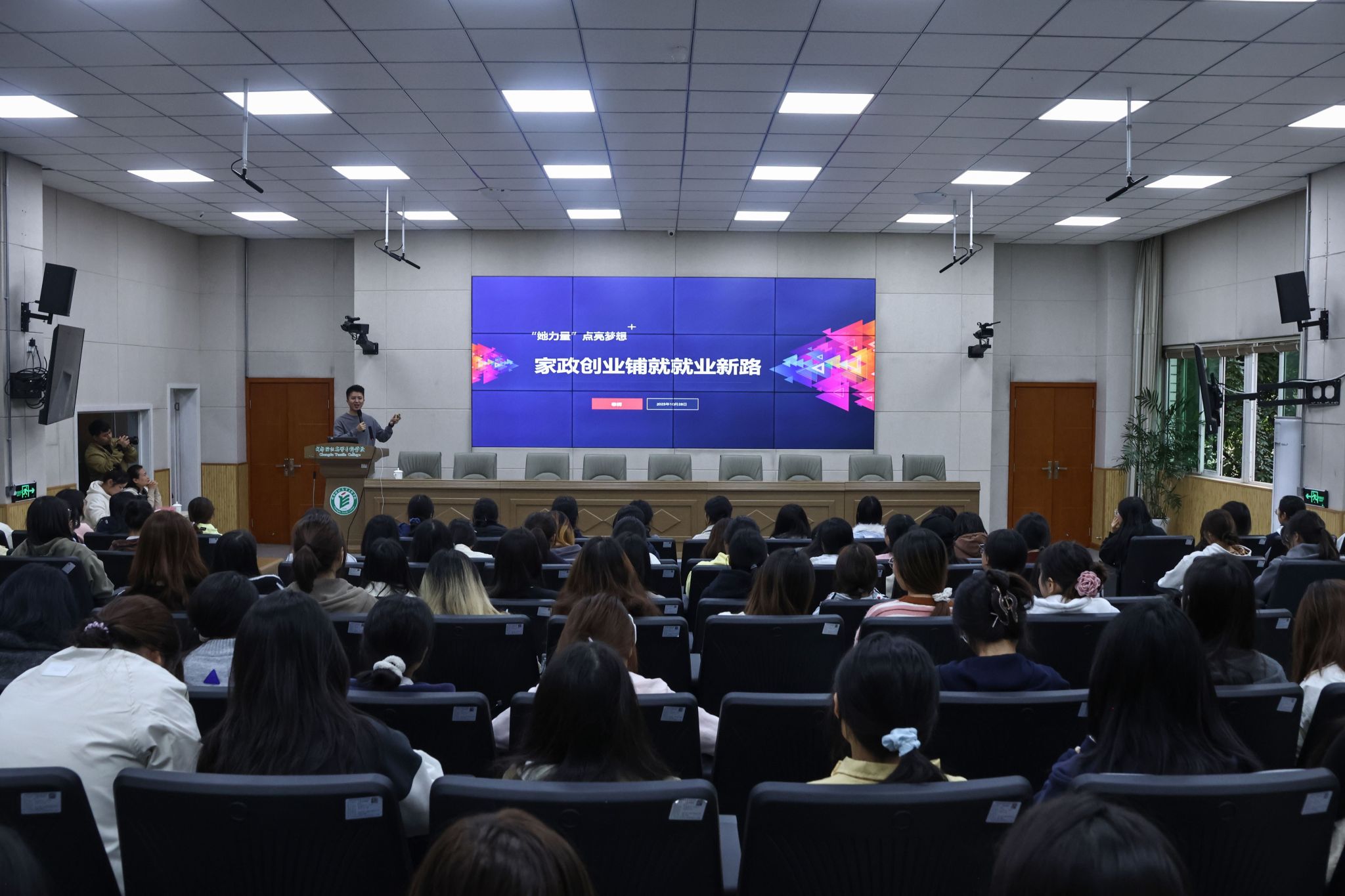 宣讲会现场,创业导师、四川省家政服务业发展促进会法人兼副会长奉辉,介绍了养老托育行业的发展历程、市场需求及未来趋势,分析了女大学生在该领域的创业机遇,帮助她们进一步明确创业方向;优秀创业代表、禧宝堂创始人郭玮围绕商业模式、AI应用等内容进行了精彩分享与互动答疑,现场气氛热烈,掌声不断。同学们纷纷表示,此次活动内容充实,通过导师们的精心指导,对养老托育行业有了新的认识,有信心也有兴趣加入这个行业。