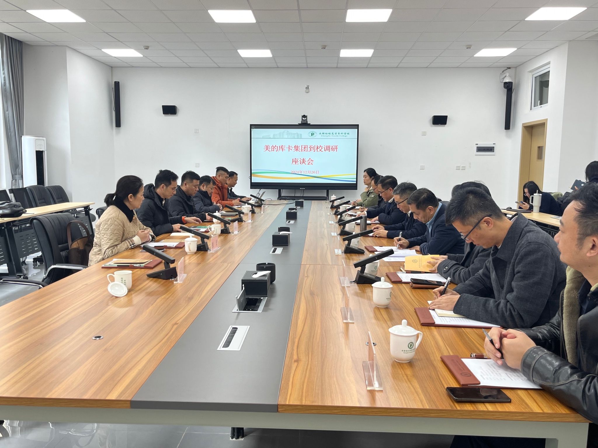 撰稿:仲诗云 一审一校:孙艳 二审二校:郑超 三审三校:童晓晖 12月26日上午,美的库卡集团CEO许桂友一行到我校邛崃产教园区调研,与学校党委书记任迎伟,党委副书记、校长孙锐,党委常委、副校长李明富围绕产教融合、人才培养与校企合作创新机制进行座谈。 座谈会前,李明富陪同许桂友一行参观了邛崃产教园区文旅学院与智造学院实训室,许桂友一行对学校邛崃产教园区优美的校园环境和完备的实习实训条件给予高度评价。
