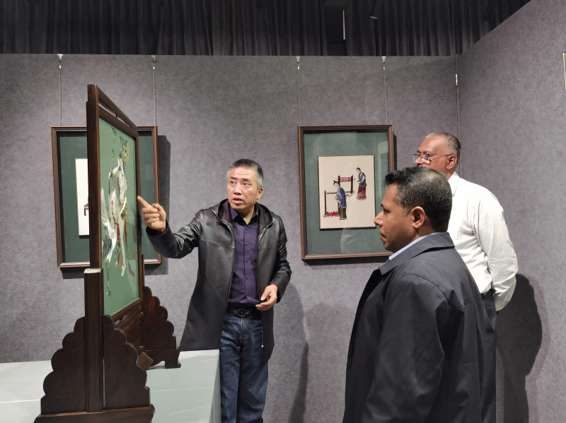 撰稿:李一楠 一审一校:孙艳 二审二校:李蓉 三审三校:童晓晖 4月9日下午,斯里兰卡佩拉德尼亚大学(University of Peradeniya)校长特伦斯-马杜吉特、管理学院高等学位委员会主席W.P.理查德-维克拉马拉特内教授等一行5人到校交流。 在学校产教交流处处长童晓晖、文旅学院副院长王敏的陪同下,佩拉德尼亚大学来宾们参观了学校施耐德电气绿色低碳技术应用中心、四川省织绣技艺非遗数字化保护与传承重点实验室(蜀绣蜀锦)及学校校史馆。特伦斯-马杜吉特一行对学校传承非遗技艺、保护非遗文化的办学水平表示赞叹,更是对学校校企深度融合开展的深度表示高度认可!