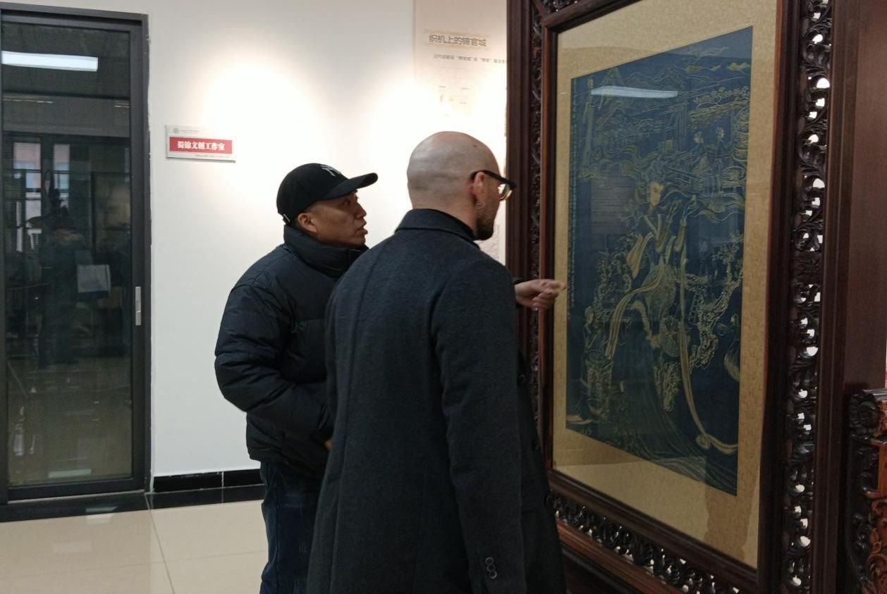 在师资队伍建设方面,建议意方院校在选派教师参与项目教学时,需重视教师的国际教学经验、专业能力以及师德师风建设。双方就引入量化评价机制,从教学质量、课堂管理和学生反馈等多个维度构建考核体系,以进一步规范教学秩序达成共识。此外,双方还计划联合举办学生课程成果展示活动与教学研讨活动,推动中外教师交流互鉴,持续提升合作办学教学质量。 座谈会结束后,童晓晖处长陪同丹特一行参观了我校织绣技艺非遗数字化保护与传承四川省文化和旅游厅重点实验室。丹特详细了解了学校在织绣非物质文化遗产传承、数字化保护以及人才培养方面的探索与实践,并参观了代表性的教学与创作成果,对我校在非遗传承与创新融合方面所取得的成效给予了高度赞扬。