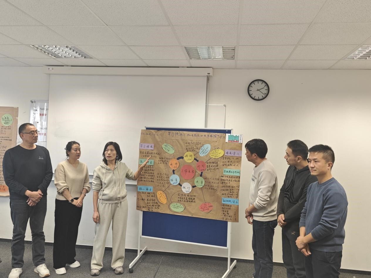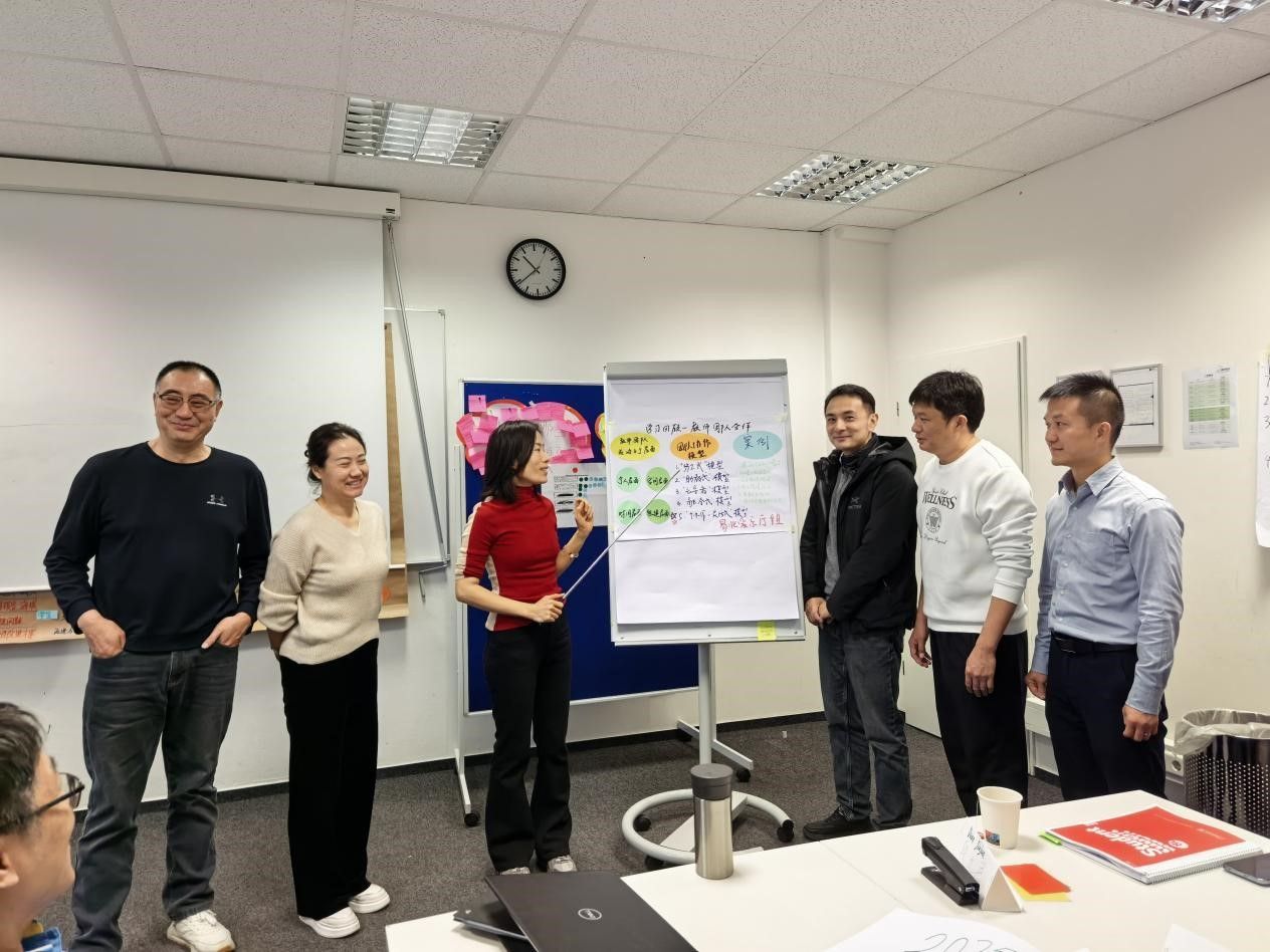 图2 培训团组结业典礼合照 本次培训旨在深入贯彻党的二十届四中全会及全国教育大会精神,落实国家教育强国建设及教师队伍建设的相关文件要求,聚焦高端智能制造前沿,通过学习德国“双元制”职业教育的先进理念与培养模式,加强国际交流合作。 本次培训于德国汉堡海因策学院举办,采取理论授课、企业参访、学校调研、课程实操、研讨交流“五位一体”的多元化培训模式。蒋佳芯老师系统研习德国 “双元制”职业教育体系、课程开发设计方法论、活页式教材编制技巧、教师团队协同建设路径、完整行动模型及多种教学方法等核心内容,形成了从制度架构到实践落地的系统化认知体系。学习期间,该同志积极参与课堂互动及专题研讨,多次代表所在小组作总结发言与成果汇报展示,展现了良好的专业素养与学习风貌。